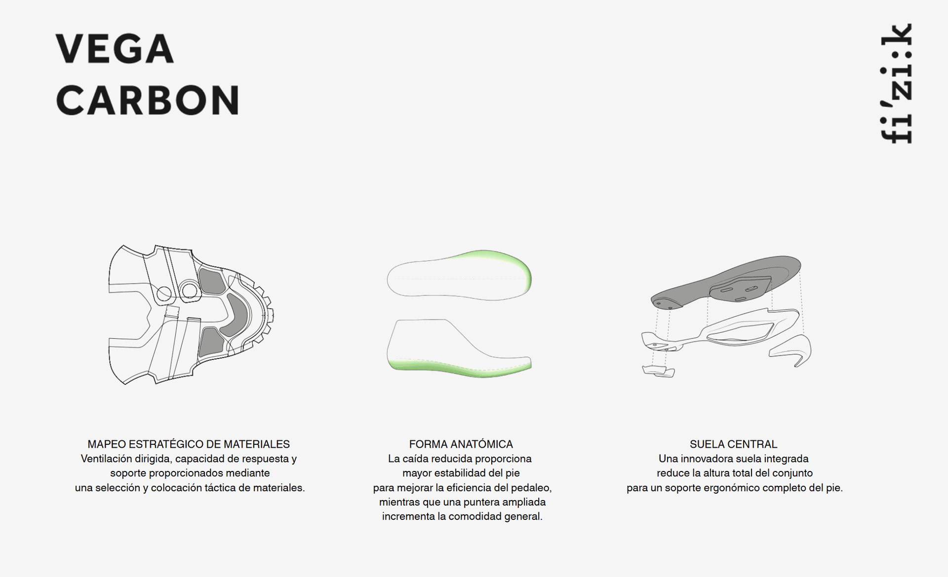 La Vega Carbon es una zapatilla de competición diseñada para ciclistas exigentes y profesionales del pelotón. Combina una suela de carbono integrada de máxima rigidez con una construcción superior ultraligera y altamente transpirable, ofreciendo una transferencia de potencia eficiente y un ajuste ergonómico optimizado para las nuevas geometrías de bicicletas de carretera.Gracias a su diseño anatómico con caída reducida y puntera ampliada, proporciona mayor estabilidad del pie y comodidad en recorridos intensos. El sistema de ajuste Dual-Dial Li2 BOA® permite una personalización precisa en el empeine y antepié. La parte superior combina tejidos estratégicos como Aeroweave y malla translúcida para ofrecer ligereza, ventilación y soporte donde más se necesita.Ideal para ciclismo en carretera, desde rutas asfaltadas suaves hasta tramos de pavé exigentes.